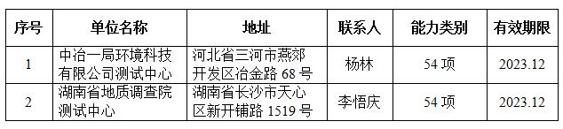 经自愿申请、材料审查、样品考核、现场审核、专家评议等程序,自2020年7月至2020年12月,共有两家实验室首次通过地球化学调查项目样品测试能力考核,具备相应的地球化学调查项目样品测试能力(54项),有效期为3年。这两家实验室是:
