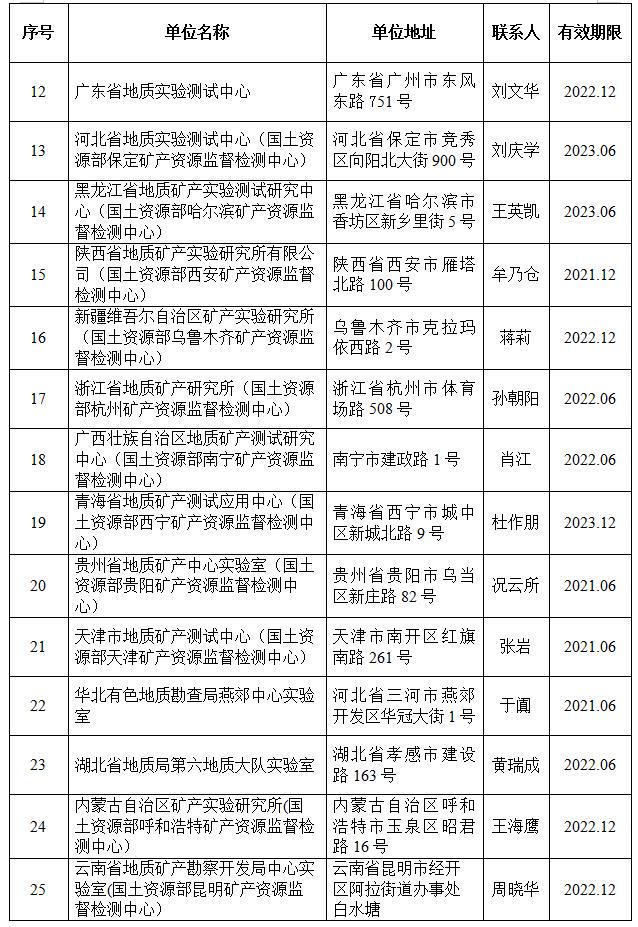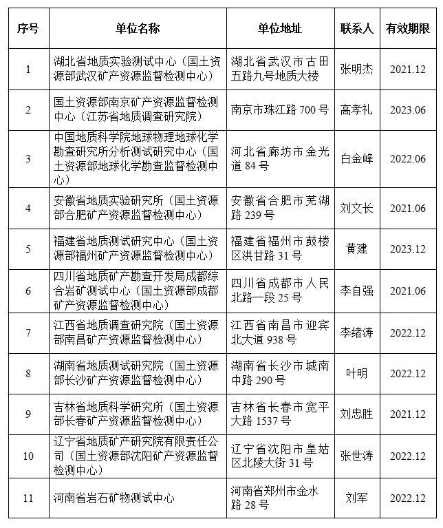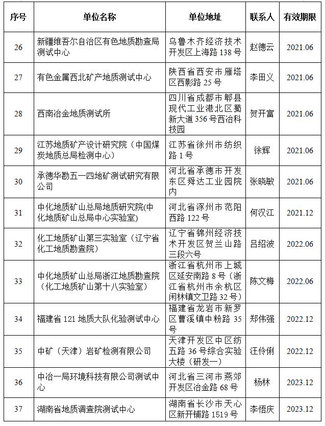 为加强地球化学调查项目实验测试质量监控工作,确保实验测试数据质量,根据《中国地质调查局关于加强地球化学调查项目分析质量监控工作有关事宜的通知(中地调函〔2017〕553号)》要求,中国地质科学院地球物理地球化学勘查研究所分批组织了地球化学调查样品分析测试实验室能力复核确认工作,现将结果公告如下。