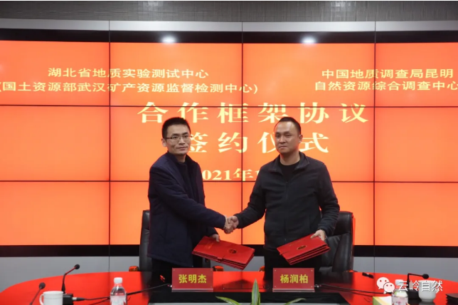 为进一步拓宽业务领域,强化务实合作,促进能力提升,1月7日,湖北省地质实验测试中心副主任张明杰、高级工程师方金东、工程师杨威一行3人到中国地质调查局昆明自然资源综合调查中心交流调研并签署合作框架协议。