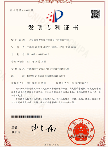 日前,自然资源部中国地质调查局郑州矿产综合利用研究所提出的“一种分离甲烷与氮气的碳分子筛制备方法” 获国家知识产权局授权,专利号为ZL201710419398.6。