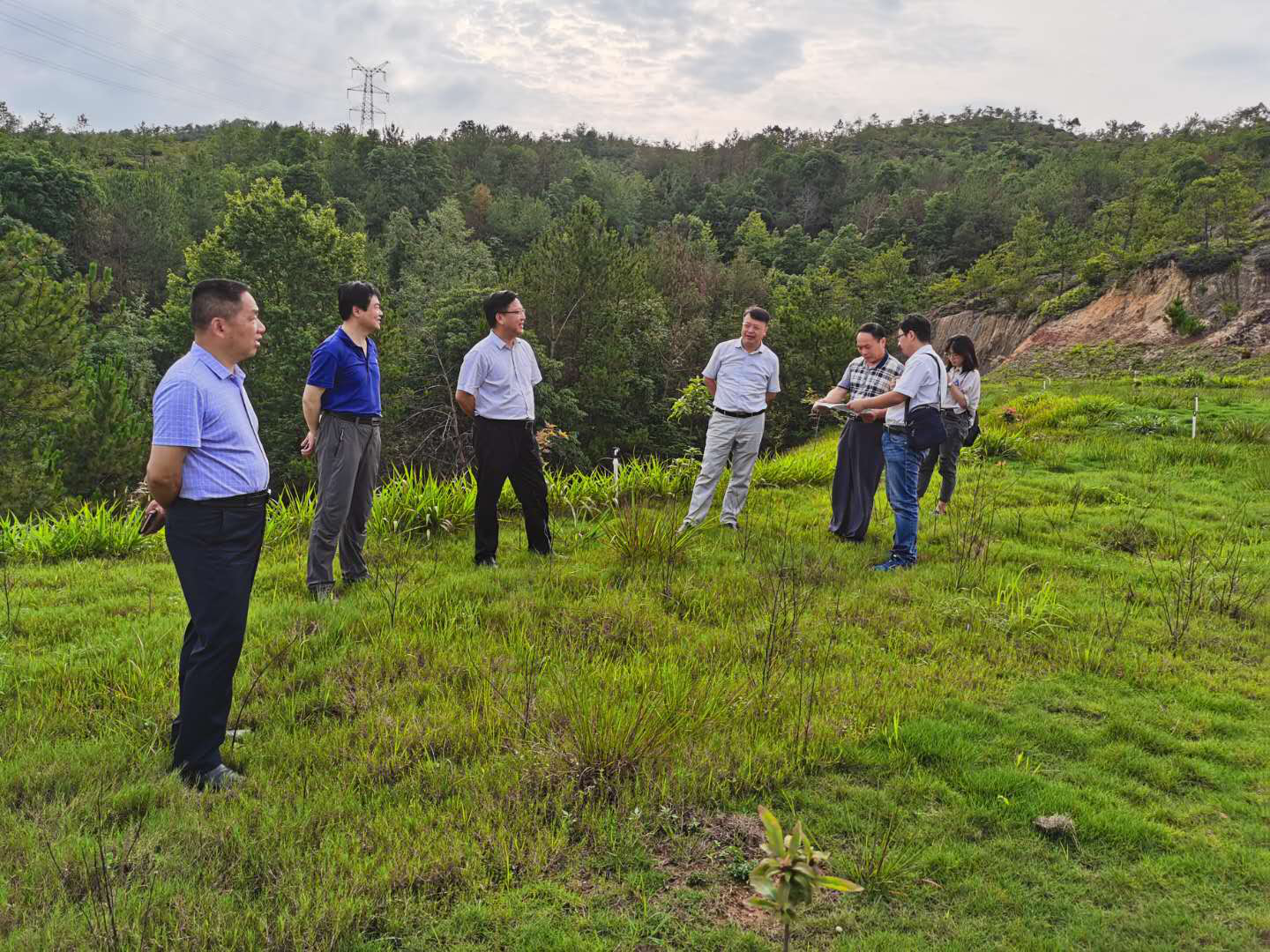 研讨结束后,实验测试中心与于都县自然资源局在拟建的罗坳废弃稀土矿生态修复示范基地进行了现场对接,进一步明确了支撑服务脱贫攻坚的需求和任务。该基地的建设将更好地发挥中心在废弃稀土矿山生态修复方面的技术优势,有效实现修复技术成果落地生根,增加当地贫困户收入,起到“示范窗口”的作用。