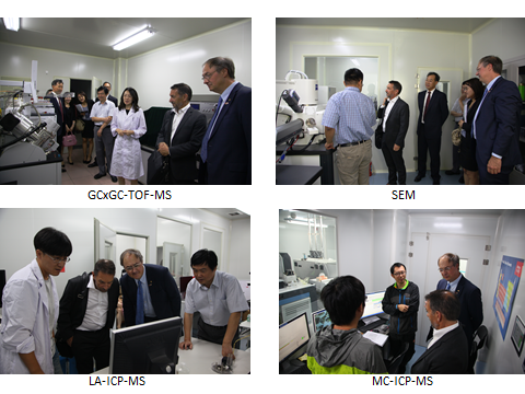 首先,Lebel博士一行在中心主任齐亚彬博士等的陪同下参观了实验室,对扫描电镜、高效液相色谱-串联质谱、多接收-电感耦合等离子体质谱、激光烧蚀-电感耦合等离子体质谱、全二维色谱-飞行时间质谱等大型仪器设备的应用领域等饶有兴趣地听取了中心年轻科技人员的详细介绍,并就测试数据采集、环境污染监测、锆石微区同位素分析等具体技术与应用问题与科技人员进行了广泛的讨论,同时对中心自主研发的油气样品分析前处理装置表现出了极大的兴趣,对中心现有青年人才储备及技术研发能力给予了充分的肯定。