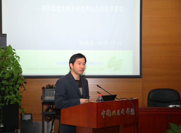 丛枝菌根是陆地生态系统中分布最广泛、最重要的互惠共生体之一,对提高植物抗逆性、保持生态系统稳定具有重要作用。陈保冬研究员在“逆境与共生”报告中,呈现了一幅幅植物体内丰富多彩又错综复杂的微观画面,详细解析了丛枝菌根真菌的生理生态功能及其在生态恢复中的作用。此报告对于当前地质行业实施“三深一土”科技创新战略,开展土壤重金属污染治理和土地生态修复具有重要的启示。