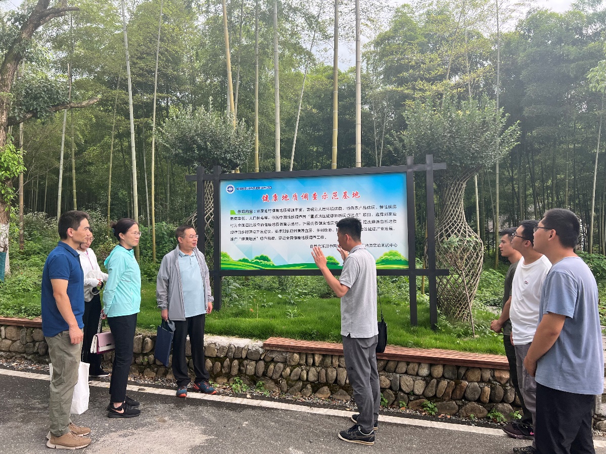 此次野外检查恰逢“七一”,宋志刚同志以一堂生动的党课与野外一线党员共庆党的101岁生日,并采取“空地联动”的形式与在京的健康地质团队人员进行了互动。围绕“不忘初心、牢记使命,为生态文明和健康中国做出更大贡献”,他为大家讲解了党的百年历史,要求大家要站在党和国家事业发展的高度去深刻理解生态文明和健康中国的重大意义,号召大家要解放思想、更新观念、推进创新,要胸怀远大、选准方向、主动作为,立身本职岗位做出我们应有的贡献。7月1日上午,检查组与项目野外工作人员到“两山论”发源地——安吉余村开展主题党日活动,沿着习近平总书记的脚步参观了余村,深刻了解了余村的变迁,特别是现场感受了“两山论”生动实践的成效,进一步增强了野外项目组工作人员“发挥地质实验测试优势,支撑服务生态文明和健康中国”的行动自觉。