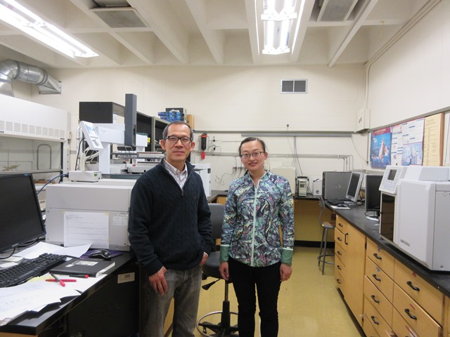 与合作项目负责人Dennis Jiang博士在卡尔加里油气地球化学研究实验室合影