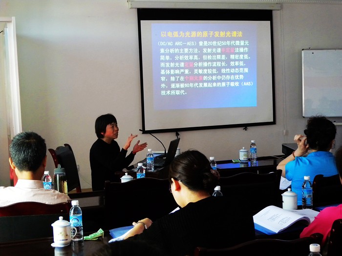 这次培训内容丰富、知识覆盖面广、实用性强。五位授课专家结合各自的专业特长,从不同角度、不同层面展开讲解,深入浅出,精心授课、认真答疑释惑。授课内容涉及10多个主题,主要包括ICP-MS原理及应用;ICP-AES基本原理与在地质分析中的应用;ICP-AES/ICP-MS技术在矿物矿石分析中的应用;X射线荧光光谱分析;离子色谱的基本原理、应用及研究进展;化学分析中的不确定度评估;化学形态及地球化学意义;元素形态分析在环境地球化学中的应用研究;标准物质管理、研制与应用;LA-ICPMS在地质研究中的应用;浅谈如何成功申报科研项目;如何撰写科技论文;国际国内现代实验测试技术发展及展望等。讲课注重将当前最先进的仪器设备和方法研究与应用研究能力的提升相结合,培训中采用课堂讲解、现场解疑、课下学员互相交流的互动式学习形式,提高了学习效果,让参训代表感受到了“认真、严谨、科学、创新”的学术精神。在学到新知识新技术的同时,从老师们身上看到了兢兢业业的敬业精神,科学严谨的治学态度,独特新颖的研究思路,以及条理分明、生动活泼的教学方法。