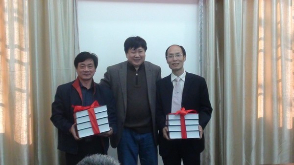 王焰新校长代表中国地质大学(武汉)向庄育勋研究员、吴淑琪研究员、夏响华研究员、王亚平研究员颁发了中国地质大学(武汉)客座教授聘书;庄育勋主任代表国家地质实验测试中心向鲍征宇教授、侯书恩教授、胡兆初教授、祁士华教授、帅琴教授、胡圣虹教授颁发了国家地质实验测试中心客座研究员聘书。庄育勋主任向中国地质大学(武汉)赠送了《岩石矿物分析》(第四版)。
