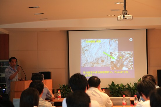 传统认为南岭燕山期复式花岗岩的补体和钨锡多金属矿床的形成与主体高度分离结晶作用有关,陈斌教授通对千里山复式岩体及其围岩详细的研究给出了全新的解读思路,认为有些补体无法通过主体分离结晶而形成,而成矿作用与具有典型A型花岗岩特征的补体关系更密切。在报告过程中,指出并强调了A型花岗岩与富成矿物质的围岩同时存在,是南岭地区成矿的关键因素,这对重新认识南岭花岗岩成因及其与成矿作用的关系并指导南岭地区多金属找矿起到了理论支撑作用。