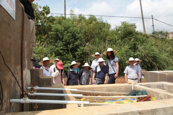 课题负责人刘晓端研究员介绍了项目进程及今后工作设想后,与会领导、专家到修复中试工程现场进行参观。黄园英博士向大家介绍了工程的技术流程和效果,通过五级处理,污浊的废水变为如矿泉水般清澈,重金属含量及各项水质指标达到国家地表水环境质量标准和农田灌溉水质标准。