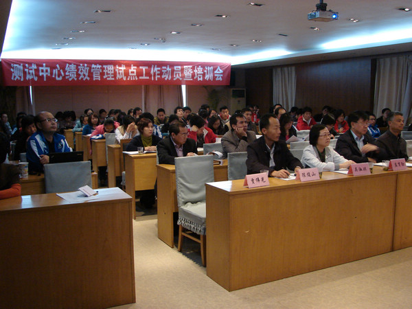 2012年10月15日下午,测试中心举行绩效管理试点工作暨培训会。会议由中心副主任沈建明同志主持,中国地质调查局绩效管理办公室副主任贾伟光、中国地质科学院组织人事处处长陈俊山,以及中心主任庄育勋,副主任吴淑琪、罗立强出席会议,中心近100名职工参加了动员培训会。