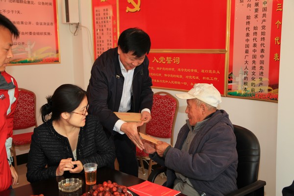 庄育勋主任亲自为低保户家庭及因病因灾等导致生活困难的张国文、杨凤志、杨凤银、康丙志、齐立香五位老年送上慰问金,祝愿老人们身体健康,晚年幸福!受助老人和苏子峪村干部对中心领导的真诚关怀表示由衷的感谢。