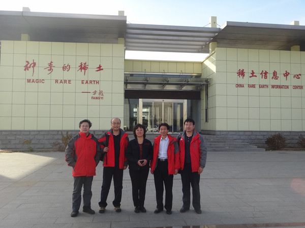 2012年10月25日,测试中心副主任沈建明、人事教育处处长王军芝、标准化研究室主任王亚平、环境地球化学研究室主任曾普胜、人事教育处副处长江蓝一行5人到包头钢铁股份有限公司稀土研究院开展学术交流活动,并参观了稀土冶金及功能材料国家工程中心和包钢稀土展厅。
