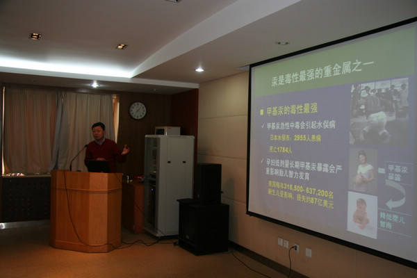 会议邀请了中国科学院贵阳地球化学研究所冯新斌研究员、中国科学院南京土壤研究所黄标研究员、中国地质大学杨忠芳教授分别作了“我国环境的汞污染”、“设施农业土壤环境质量变化规律、环境风险与控制对策”、“农田、河流系统生态地球化学研究及展望”为题的学术报告。