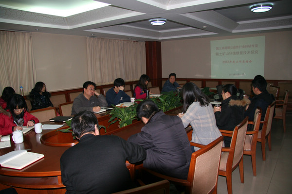 2013年1月11日上午,生态环境地球化学研究室召开了部公益专项稀土矿山修复技术研究项目2012年度工作总结会,中心科技外事处负责人、项目课题负责人及生态环境室全体人员参加本次会议。
