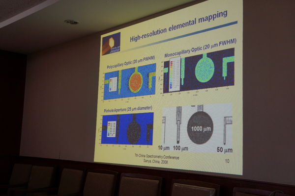 Gao博士首先对于X-射线光谱技术原理进行了简要概述,解释了多毛细管透镜的原理、技术难点及研发趋势,介绍了不同类型透镜的特点、光学参数及应用,并提供了透镜产品用于观摩。同时,针对光晕效应等实际科研中遇到的问题,讨论了降低干扰的几个途径。在此基础上,结合当前研究热点,介绍了微区X-射线荧光、微区X-射线吸收近边结构、同步辐射等分析方法的应用和进展。