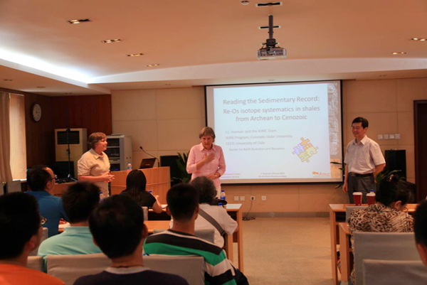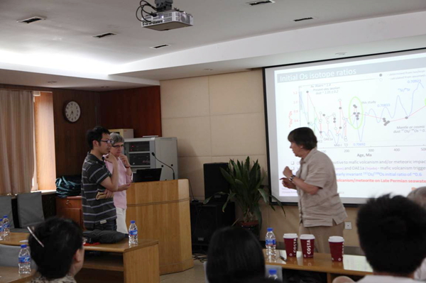 Judith Hannah作了题为“Re-Os同位素在太古宙到新生代的沉积记录考证”的报告;Holly Stein作了题为“有毒海水造成的二叠-三叠纪的生物大灭绝”的报告。两位教授着重阐述了黑色页岩、沥青等样品进行Re-Os分析的采集方法和对测试结果的解释,以及Re-Os同位素研究在厘定地层界限方面的进展。针对Re-Os同位素今后的研究,两位教授都强调注重地质和分析的结合。