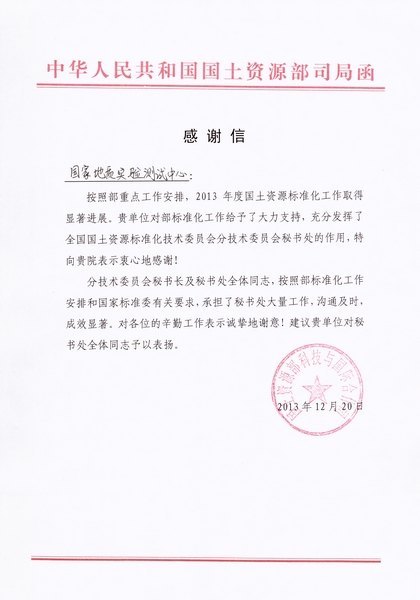 日前国土资源部科技与国际合作司对我中心的鼎力支持表示诚挚的感谢,特别对秘书处工作的显著成效和全体同志的辛勤工作表示诚挚的感谢。中心号召向上述部门和人员学习,继续围绕相关工作,为上级主管部门做好业务支撑和服务。