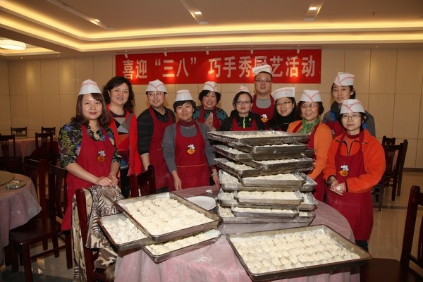 国家地质实验测试中心由工会主席许俊玉带领10名职工参加了本次活动。在整个包饺子的过程中,无论是处室领导,还是平时的业务骨干,无论是男同事,还是在家中被父母宠爱的乖乖女,大家分工合作,密切配合,或擀皮,或拌馅,充分展示自己精湛的厨艺,让全体职工品尝到了现场自制的5种馅料的美味饺子。在锅碗瓢盆的奏鸣曲中,大家亲手劳动,乐在其中,感受到了大家庭其乐融融的温馨、和谐与紧张工作之余的轻松,并以此庆祝“三八”妇女节。