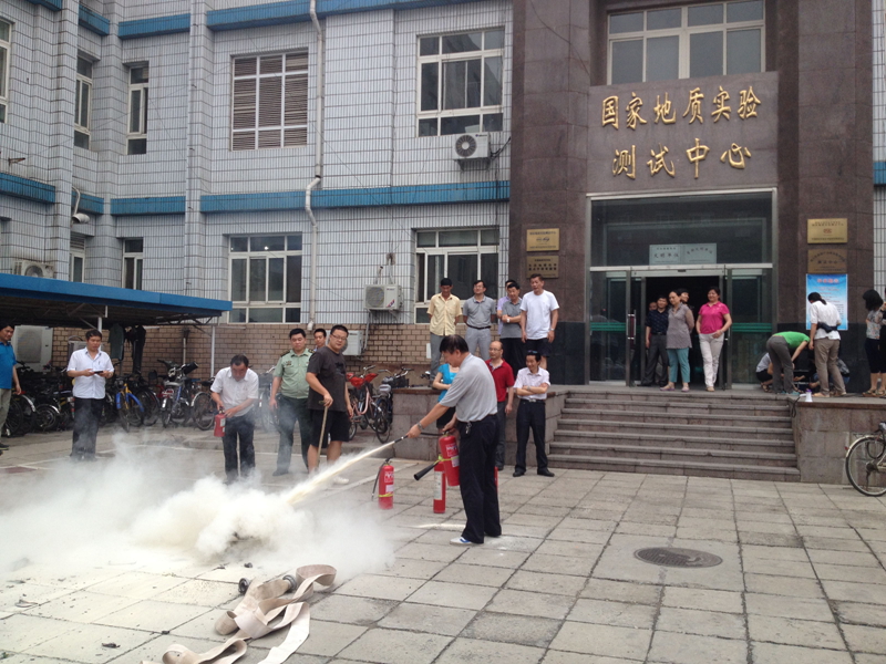 在总指挥庄育勋主任口令下,消防警报拉响,全体人员有序撤离测试中心办公大楼。在专业教官的指导下开展了消防演练活动,干部职工争先操作各种消防器材,使用灭火器扑灭火盆中的火,练习使用和整理消防水带等。