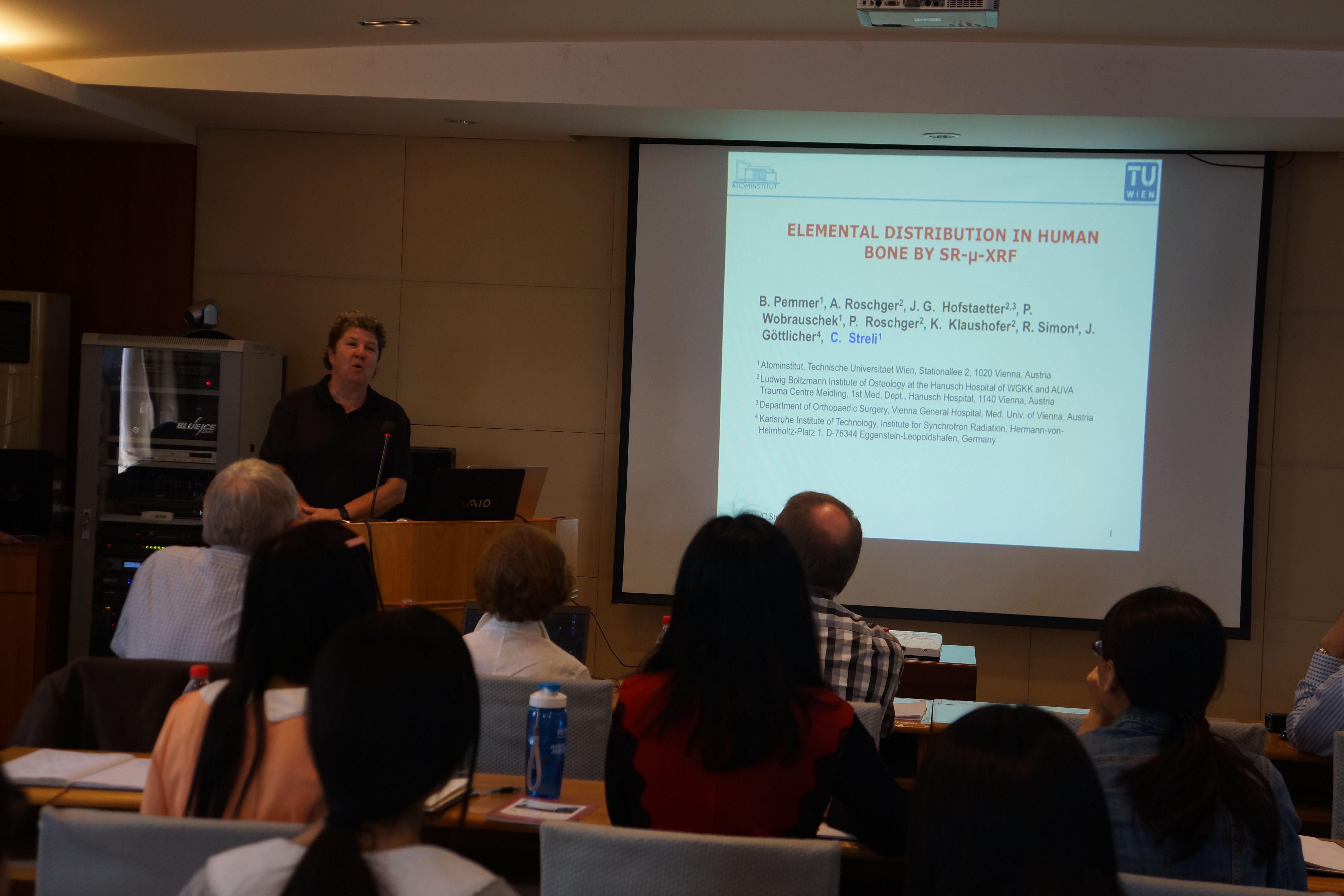 国际原子能署的Streli教授,来自奥地利的维也纳大学,该大学是TXRF分析技术的发明地,Streli教授详细讲解了TXRF仪器的内部构造和应用技术,强调了TXRF 技术的优越性,并具体应用于大气飘尘检测,获得了大气飘尘中颗粒物组成信息,特别是污染重金属As的形态。来自日本京都大学的Kawai教授讲述了样品采集与制备技术的重要性及小型X射线装置的精巧设计与制造,同时,来自日本的大阪市立大学Tsuji教授讲解了其利用TXRF技术标准化的过程,来并正在ISO开展TXRF分析标准的制定和推广。