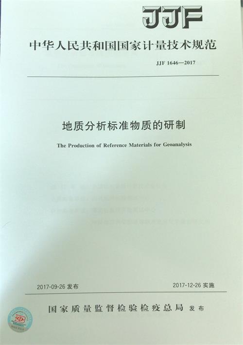 据悉,由国家地质实验测试中心负责制定的《地质分析标准物质的研制》标准,获批国家计量技术规范,标准编号为JJF 1646-2017,将于2017年12月26日起开始实施。