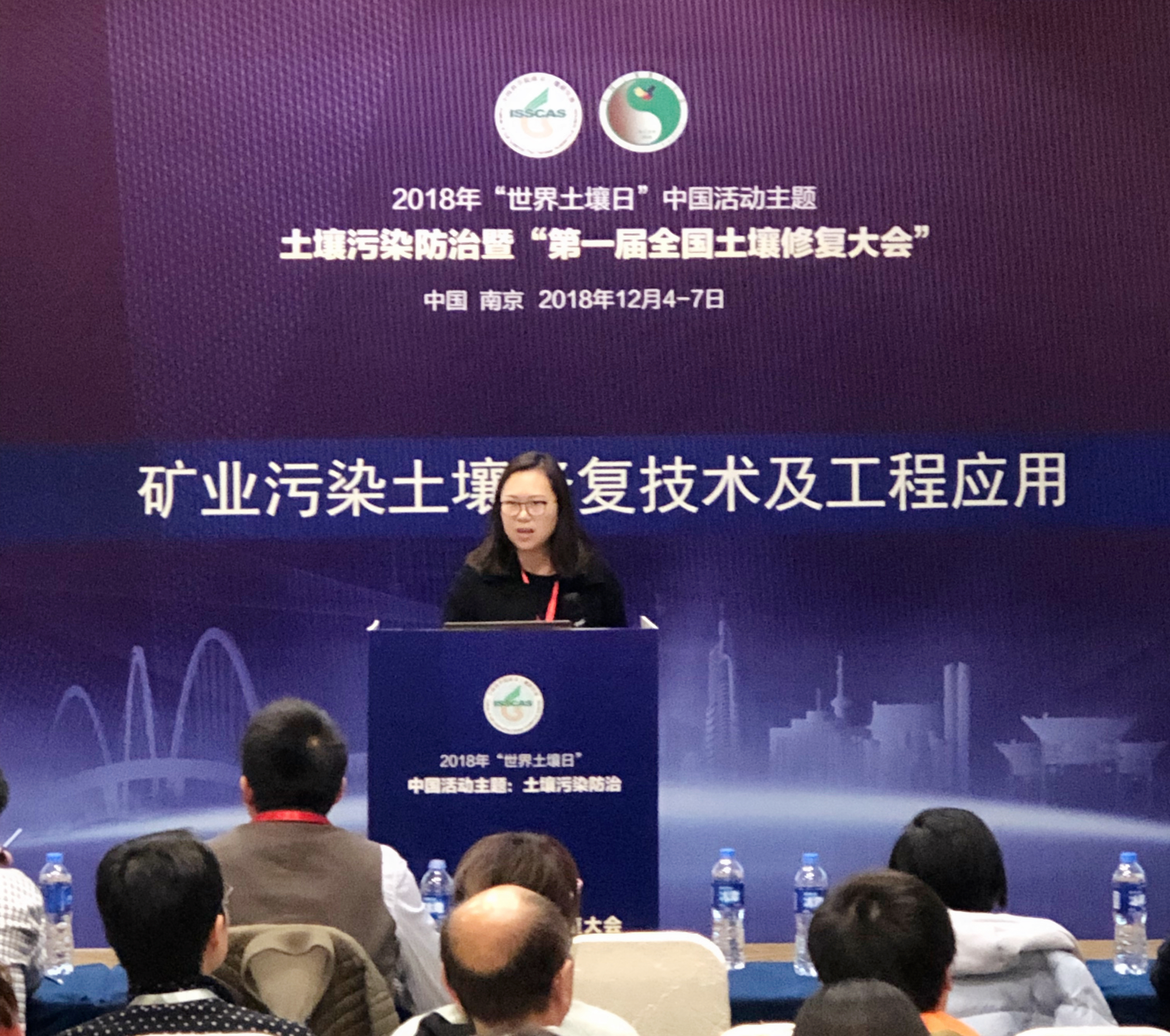 部重点实验室副主任谭科艳博士在会上作了题为“土壤污染的地球化学工程修复技术与未来发展思考”的报告,刘永兵博士作了题为“镉铅复合污染土壤协同稳定化机理研究”的报告,王喆在研究生专场作题为“地球化学工程技术修复农田土壤重金属污染研究进展”的报告并向大会提交了摘要。黄园英博士提交了题为“电动-渗透反应格栅联合技术用于复合污染土壤修复”的会议摘要及电子展板。通过多种形式的成果推介与宣传,充分展现了部生态地球化学实验室在生态修复方面的成就与风采。
