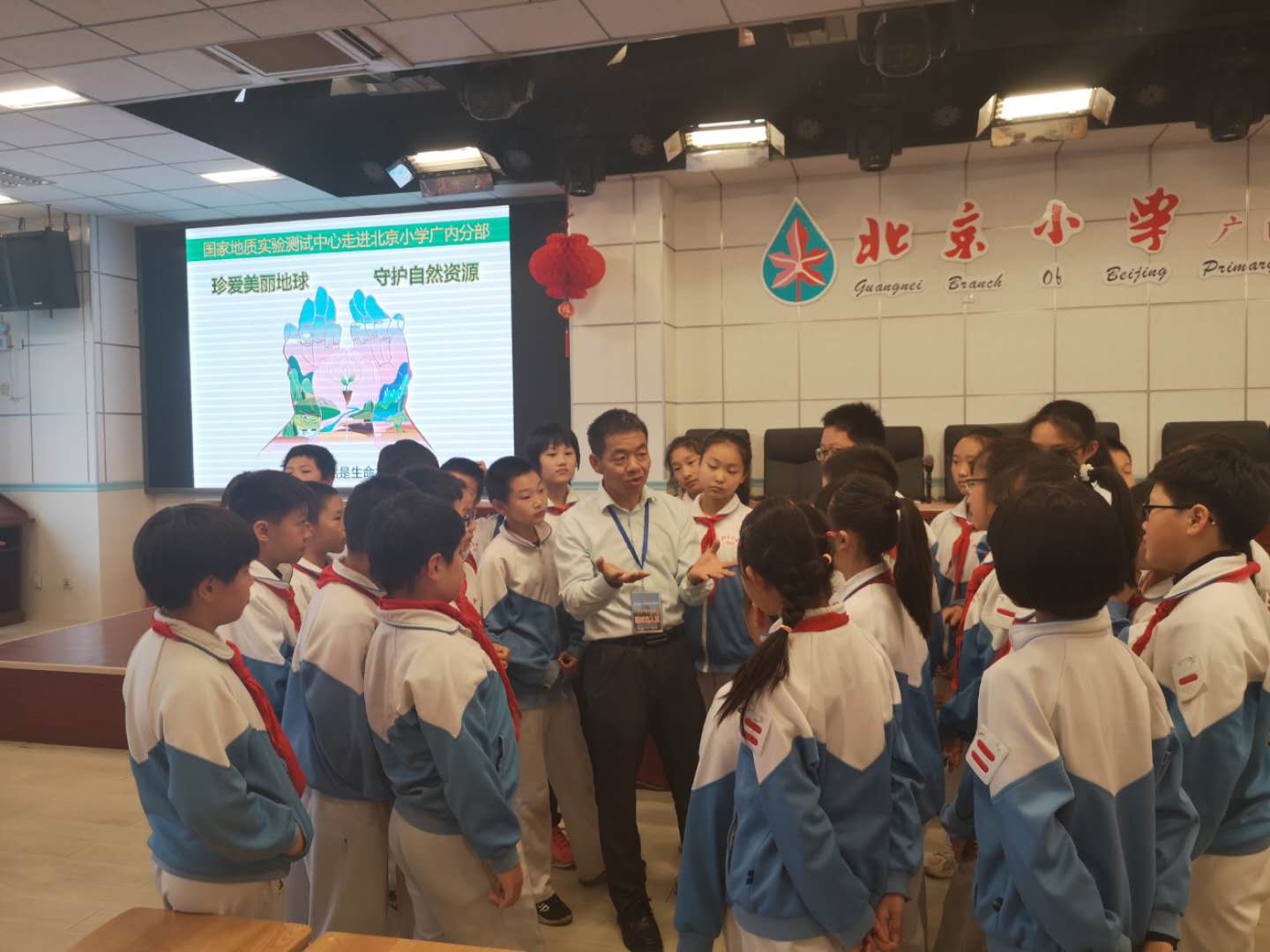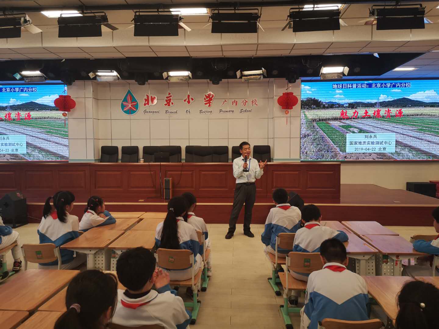 4月22日,自然资源部中国地质调查局国家地质实验测试中心走进北京小学广内分部,开展第50个地球日主题科普活动,宣传“珍爱美丽地球 守护自然资源”的绿色发展理念。实验测试中心刘永兵研究员为该校五年级近300名学生,作了题为“魅力土壤资源”科普讲座。向同学们介绍地球、资源、土壤之间密不可分的联系,普及了加强资源保护,建设生态文明的重要性。通过科普宣传活动,激发了同学们热爱自然、珍惜自然资源、保护生态环境的生态意识,让“爱护地球资源从我做起”的理念陪伴他们的成长。