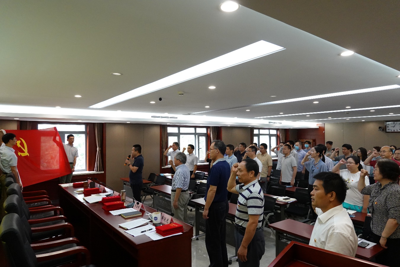 会议组织了新党员入党宣誓、老党员重温入党誓词,全体党员面向鲜红的党旗庄严宣誓,许下不忘初心、砥砺奋进的铮铮誓言。会议宣读了《中心党委关于表彰优秀共产党员、优秀党务工作者和先进党支部的决定》并进行了表彰,传达学习了习近平总书记在“七一勋章”颁授仪式上的讲话,号召广大党员干部要认真学习领会习近平总书记讲话精神,自觉向“七一勋章”获得者看齐,坚定信念、践行宗旨、拼搏奉献、廉洁奉公,以奋发有为的实际行动加快推进实验测试中心改革发展!