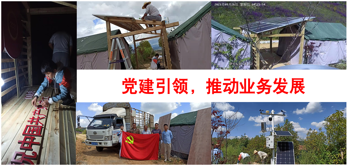 2021年中秋节假期,为了及时完成项目任务,项目组的同志们放弃与家人团圆的机会,投身野外一线开展矿山生态恢复监测工作站的整修加固工作。为了赶工期、赶进度,项目组成员放弃休息、加班加点,每天工作时间超过14个小时,在三天的时间里完成了工作站帐篷的加固与地板整修,完成榫卯结构近百个,螺丝加固点数千个,初步建成了野外生物多样性地质数据观测站。建站以来,每天采集土壤温湿度、大气温湿度、光照强度等数据点1万余个,随着今后监测范围(更大的监测面积)和功能(碳汇评价能力)的扩大完善,观测站将会在生态文明建设、碳汇系统评价、践行联合国生物多样性保护宣言等国家战略部署中发挥更重要的作用。